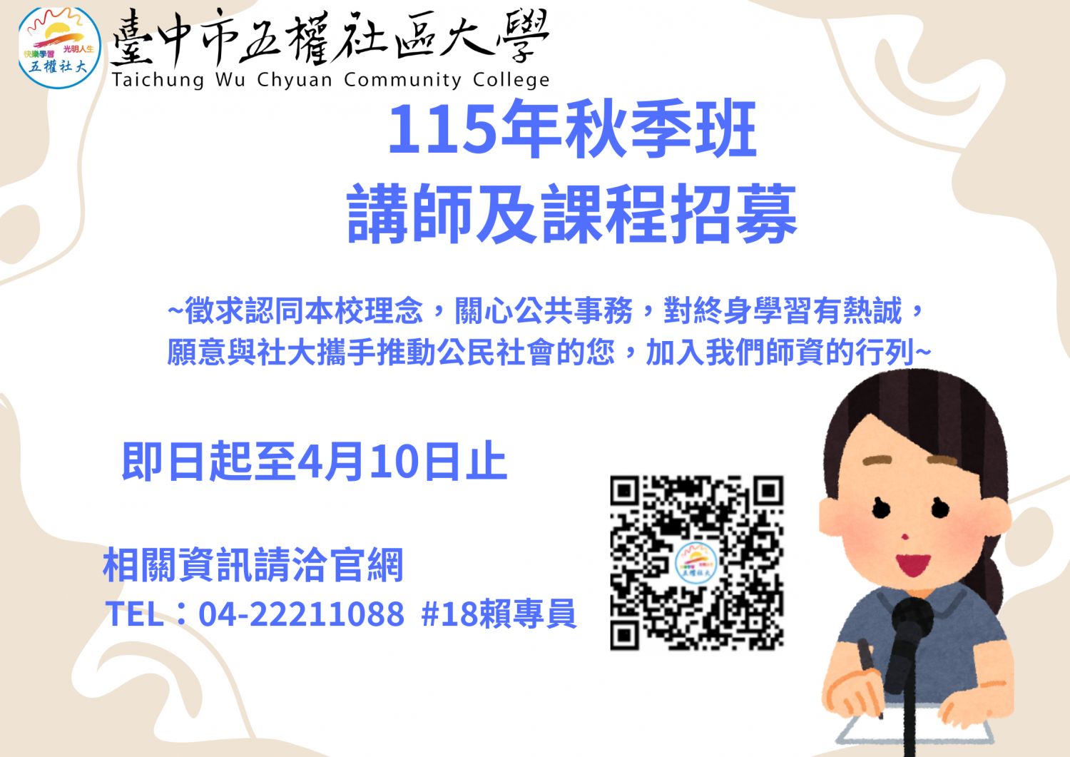 簡章及辦法:https://wuchyuan.cyut.edu.tw/index/content.php?token=jXGg5zzGPcy+c3YhP9wL8vpQezvyryAFItA7DTa58vY=